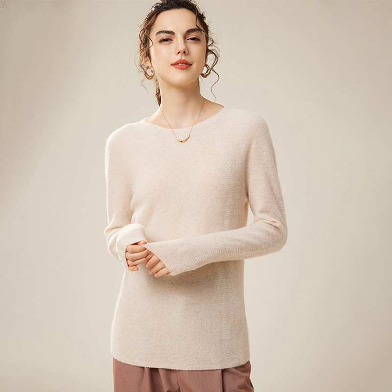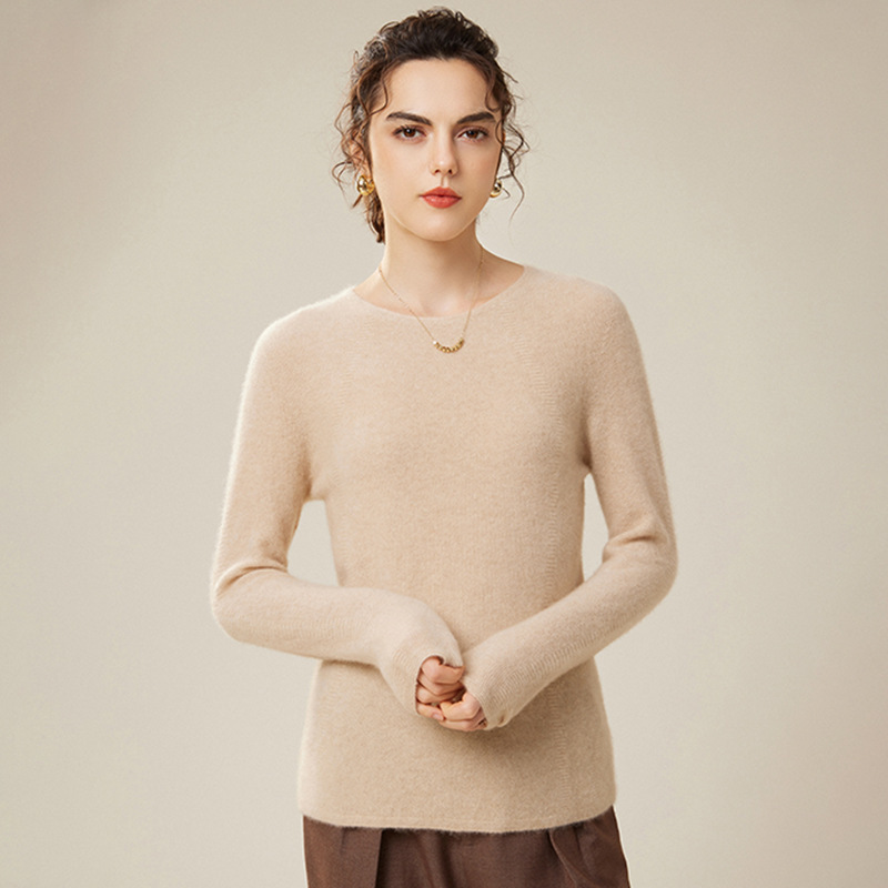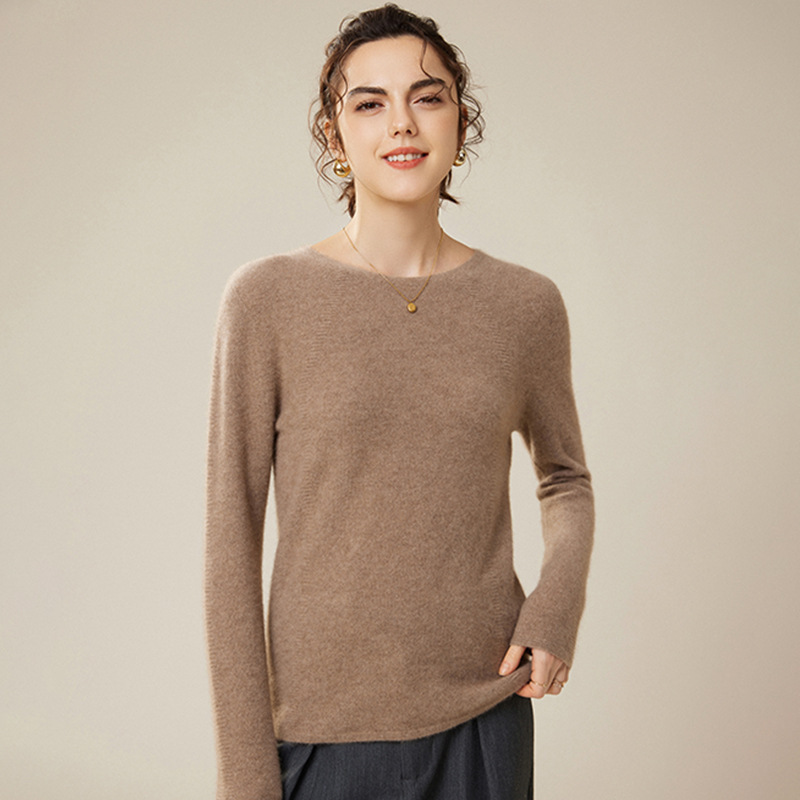 2024秋冬新款100%羊绒衫纯色圆领简约气质通勤轻奢针织衫打底衫外